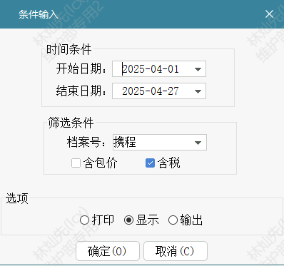 [报表条件]:营业日期区间范围、档案号