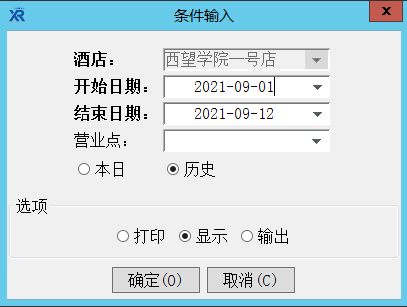 【条件说明】:指定日期,营业点下按不同款待理由分类的款待金额