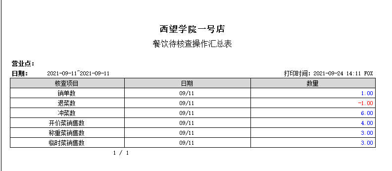 【条件说明】:指定日期,营业点下的各种非常规点单、收银操作,概况一览