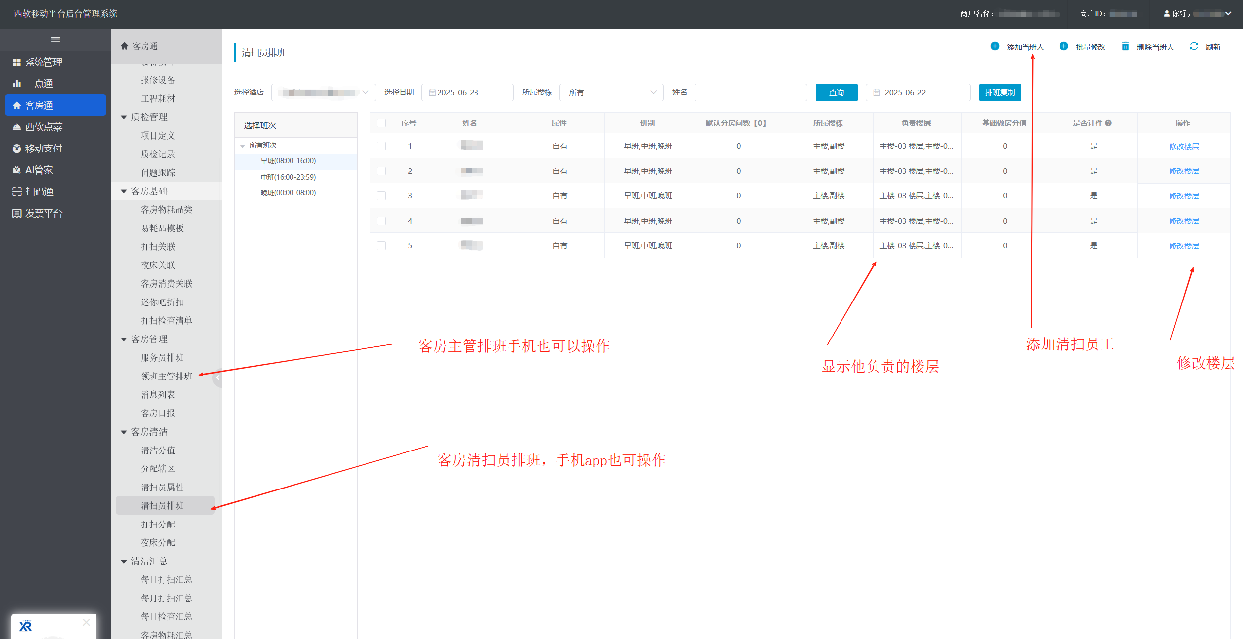 新增属性后则需要清扫员排版,主管也是,主管也可以app对清扫员进行排班