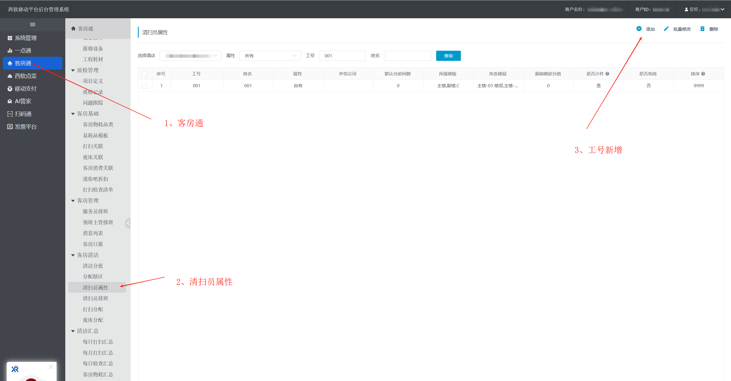 客房通清扫员需要清扫员属性添加,客房主管选择不需要