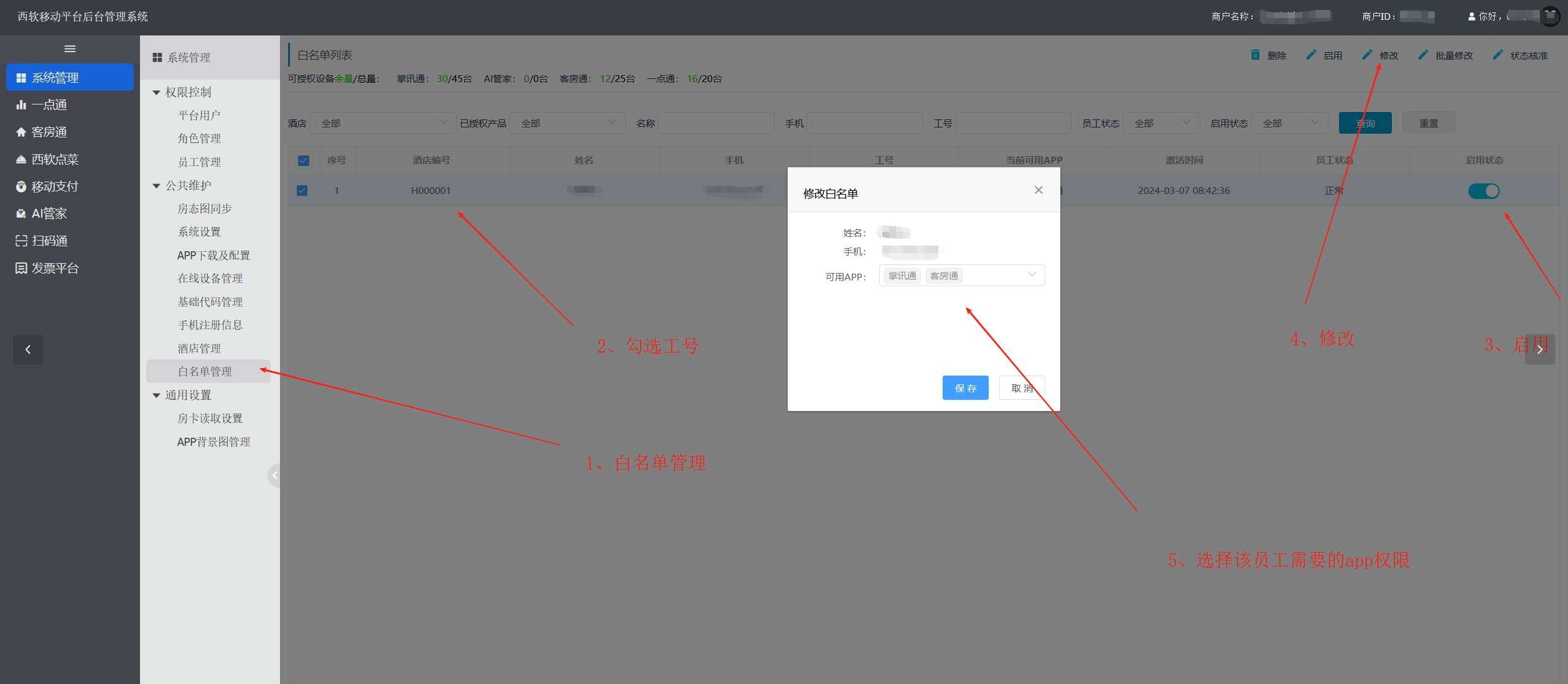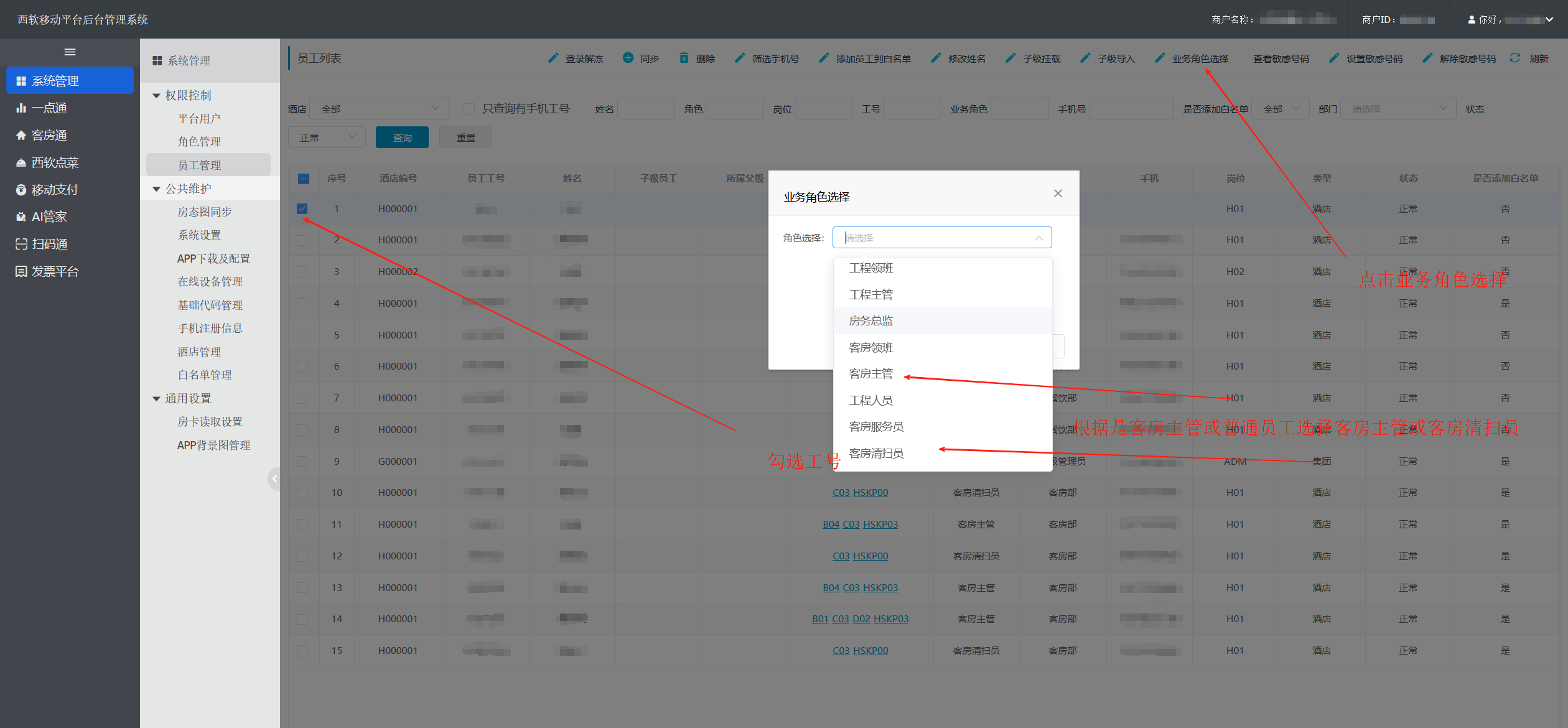 客房员工的话需要增加一个业务角色方便操作掌讯通/客房通