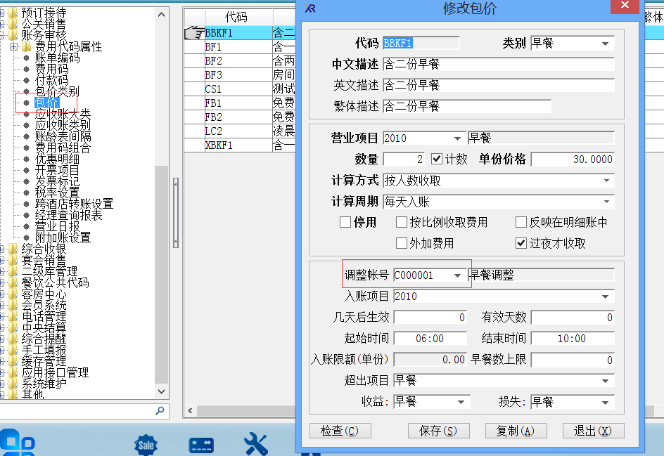 与此有关的包价设置在系统维护里,具体操作见(图2)
