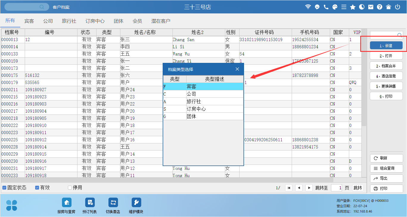 若在客人档案里关联了对应销售员时,再次使用该档案去做预订或办理入住时,客人主单会自动带入出该销售员,从而客人的消费都跟该销售员挂钩,销售员的业绩也会随之增加。