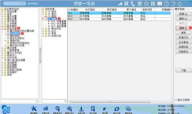 2)、进入综合收银—菜谱管理—套餐,点击“编辑”进入菜类维护界面。图2