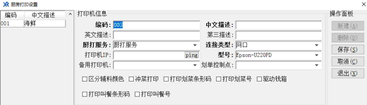 2)在弹出厨房打印设置中点击新建或直接在打印机IP型号那修改,然后点保存。