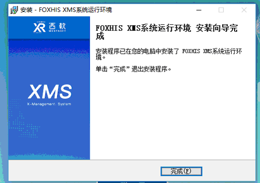 6)等待安装完毕,出现FOXHIS XMS系统环境 安装向导完成,点击完成。如图6。