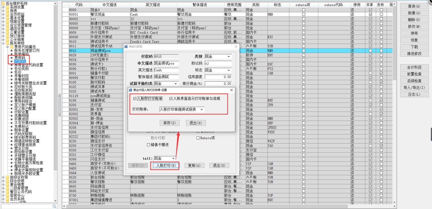 1)维护模块付款码/费用码设置界面增加入账打印设置按钮,支持设置打印的报表编号 及打印的选项;1)维护模块付款码/费用码设置界面增加入账打印设置按钮,支持设置打印的报表编号 及打印的选项;