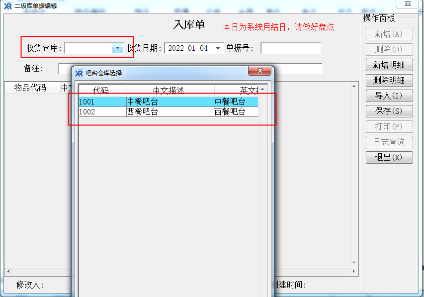 2)餐饮营业点可以选择新增的二级库吧台,如图所示。