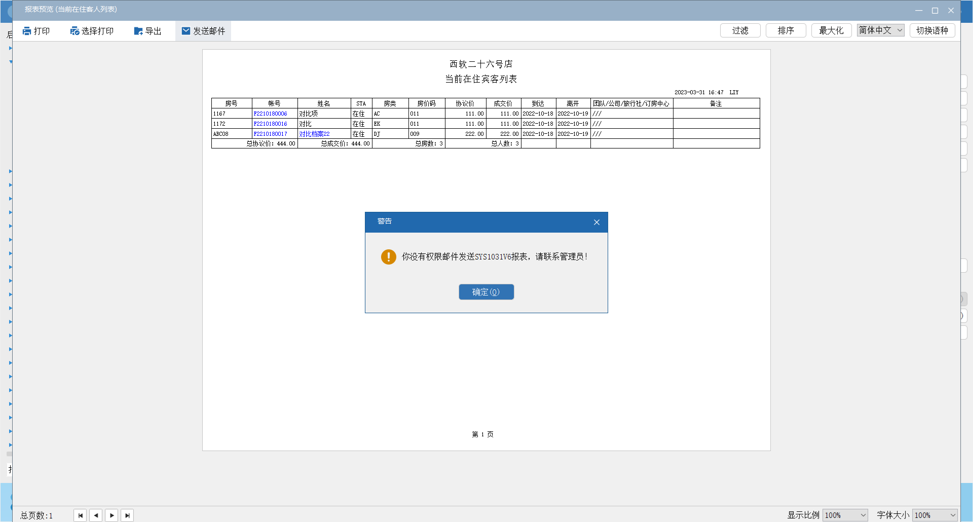 酒店人员发送报表邮件,需要先下载报表,再通过邮件发送工具发送邮件,操作繁琐,需优化。