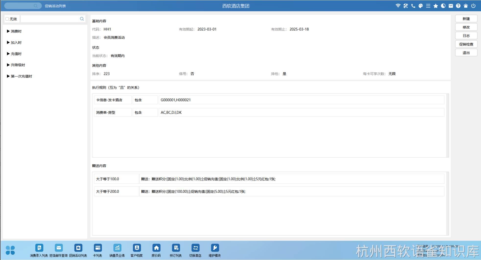 (3)促销检查功能可以代入条件可以简要判断某些条件可以触发的促销活动,赠送的内容。默认按场景进行促销检查,输入对应场景需要的条件,将会显示满足哪个会员促销以及触发内容。