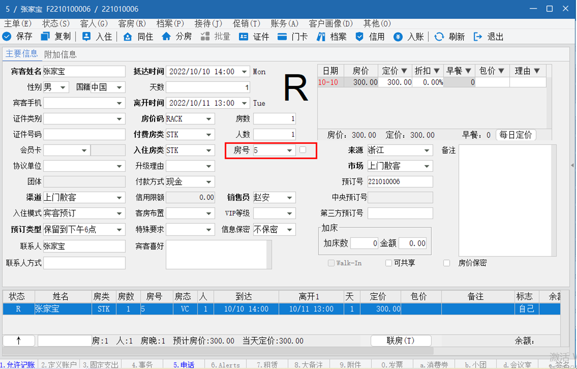 在给宾客排房之后,若该房间不可进行更换,可使用锁房功能,将房号锁定,避免前台误操作。