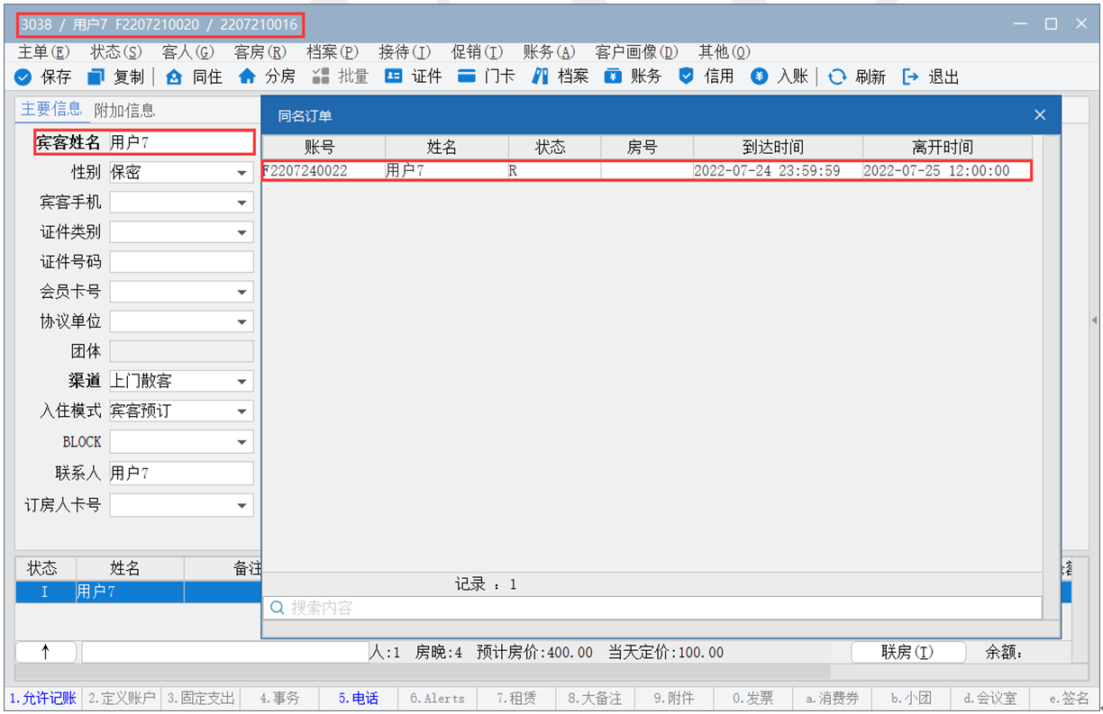 (2)在同名订单的窗口就可以看到和当前订单同名的订单。如下图: