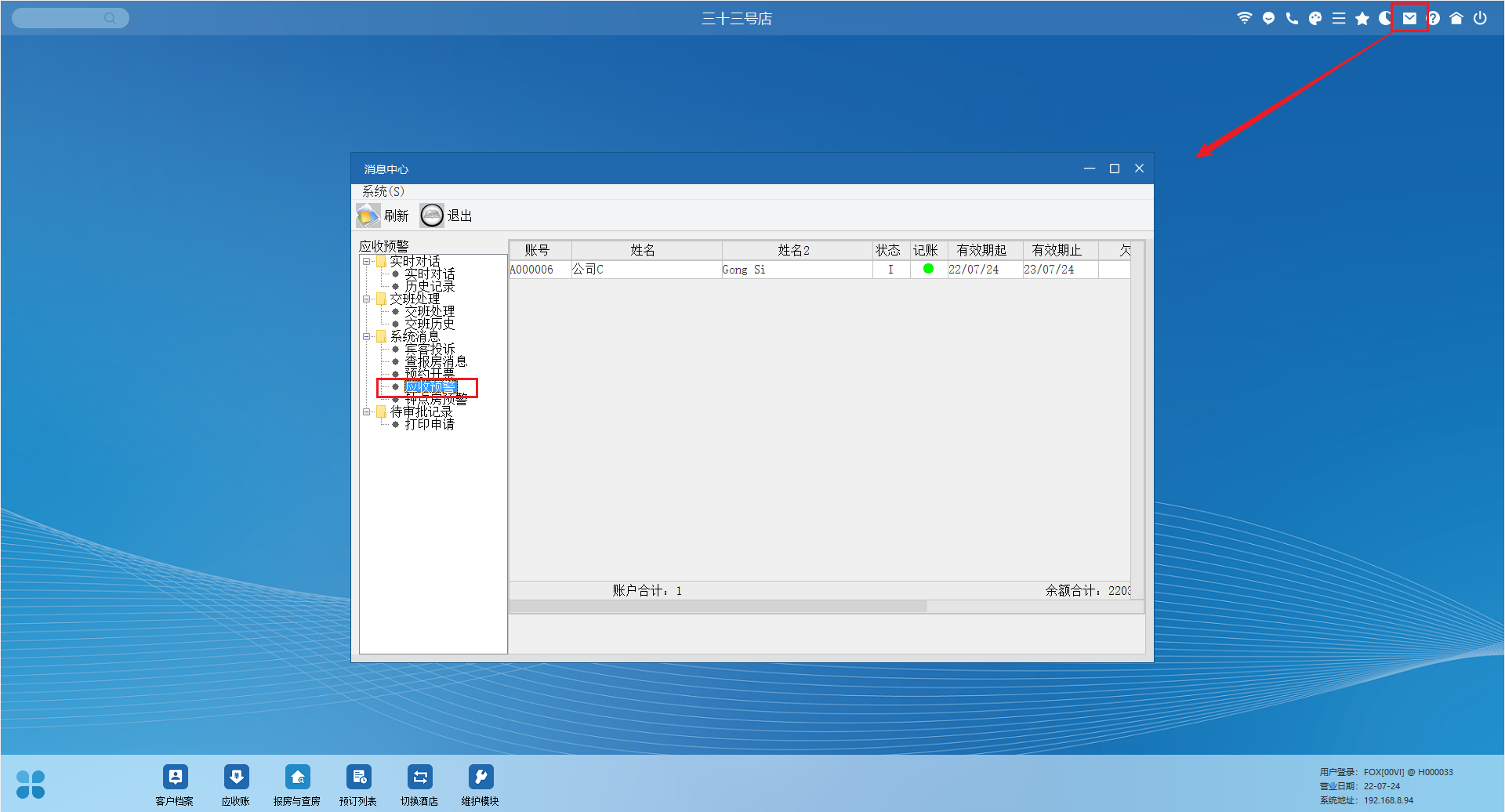 (2)在消息中心→系统消息→应收预警中可以查看消息记录,指定部门的员工可收取到提醒消息;