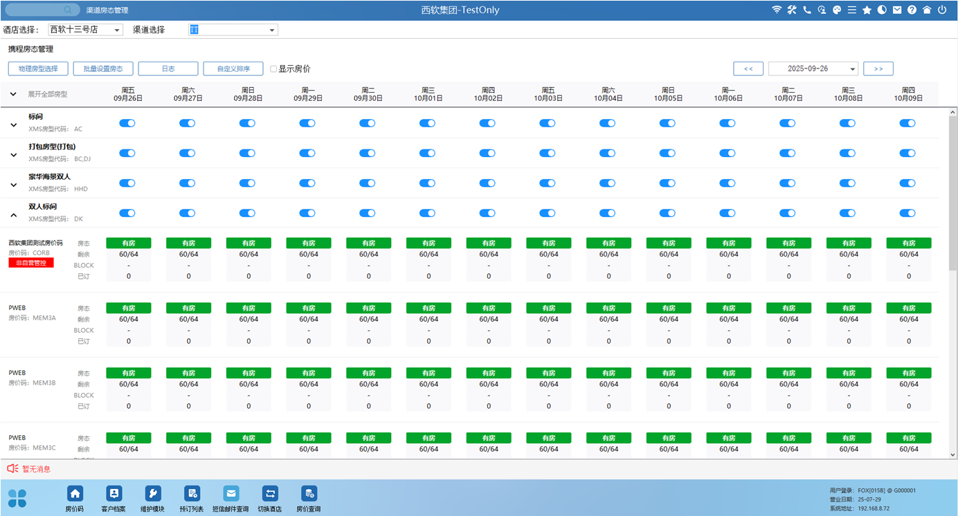标准渠道房态管理,整合目前的渠道房态和渠道房价,支持在一个界面里进行信息的查询和业务的管控。