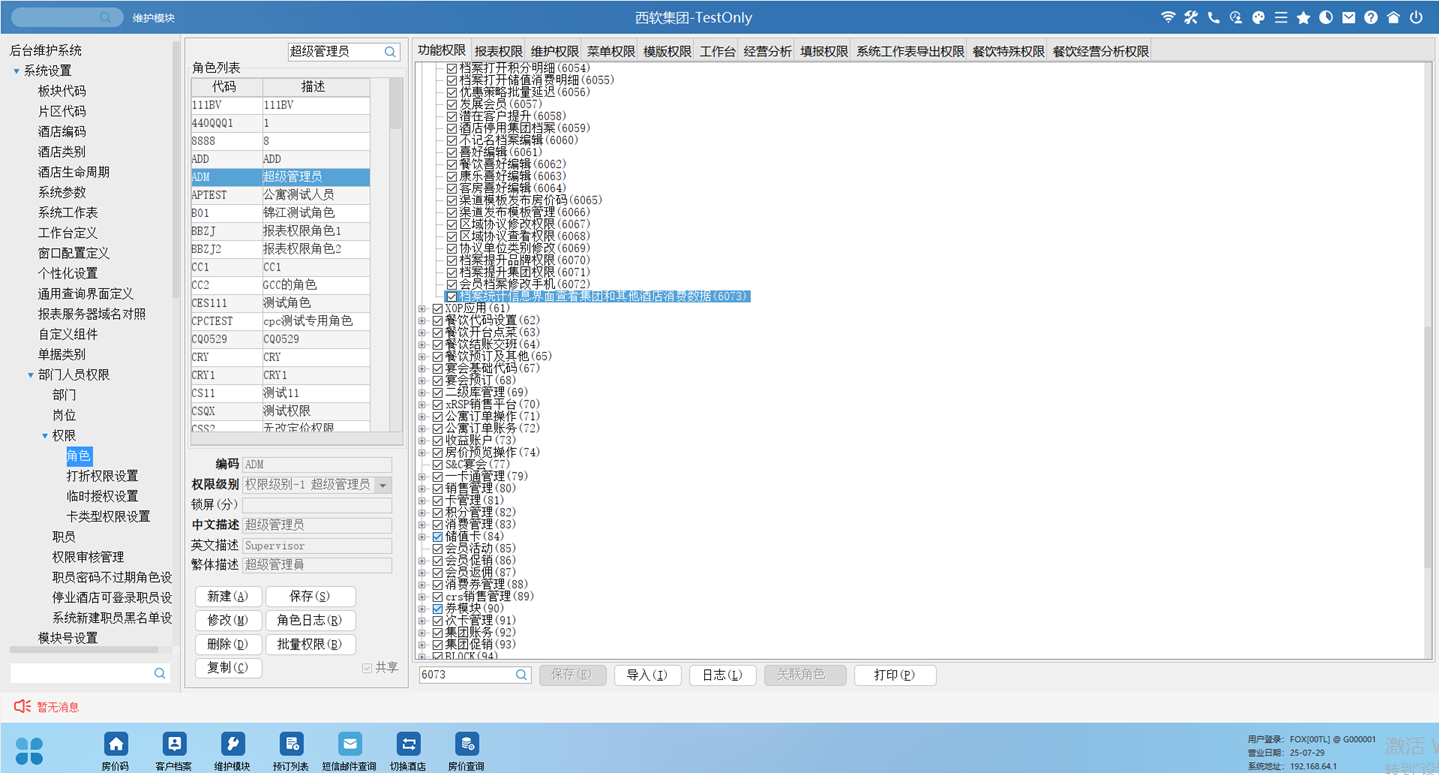 设置入口:维护模块-角色-功能权限-档案统计信息界面查看集团和其他酒店消费数据