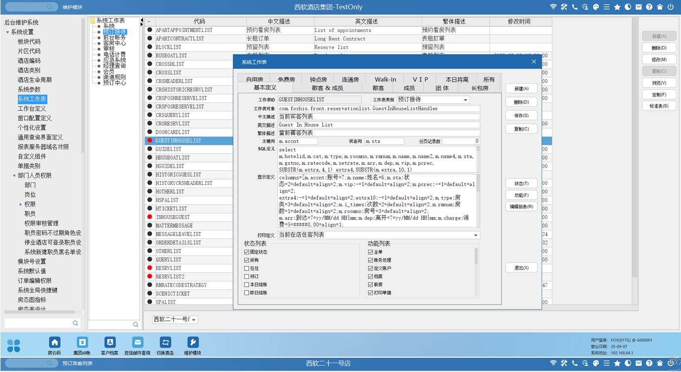 支持的系统工作表:1.预订列表 2.当前在住列表 3.当前宾客列表