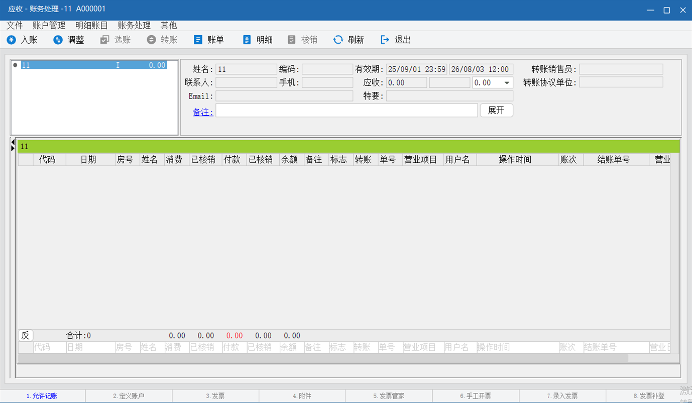 a)双击应收入账(标记为A),穿透打开应收账务处理窗口;