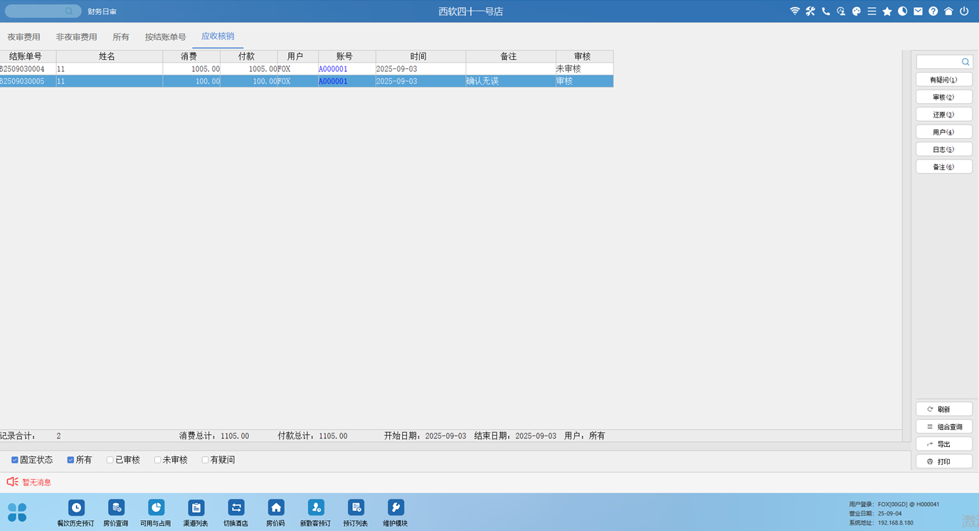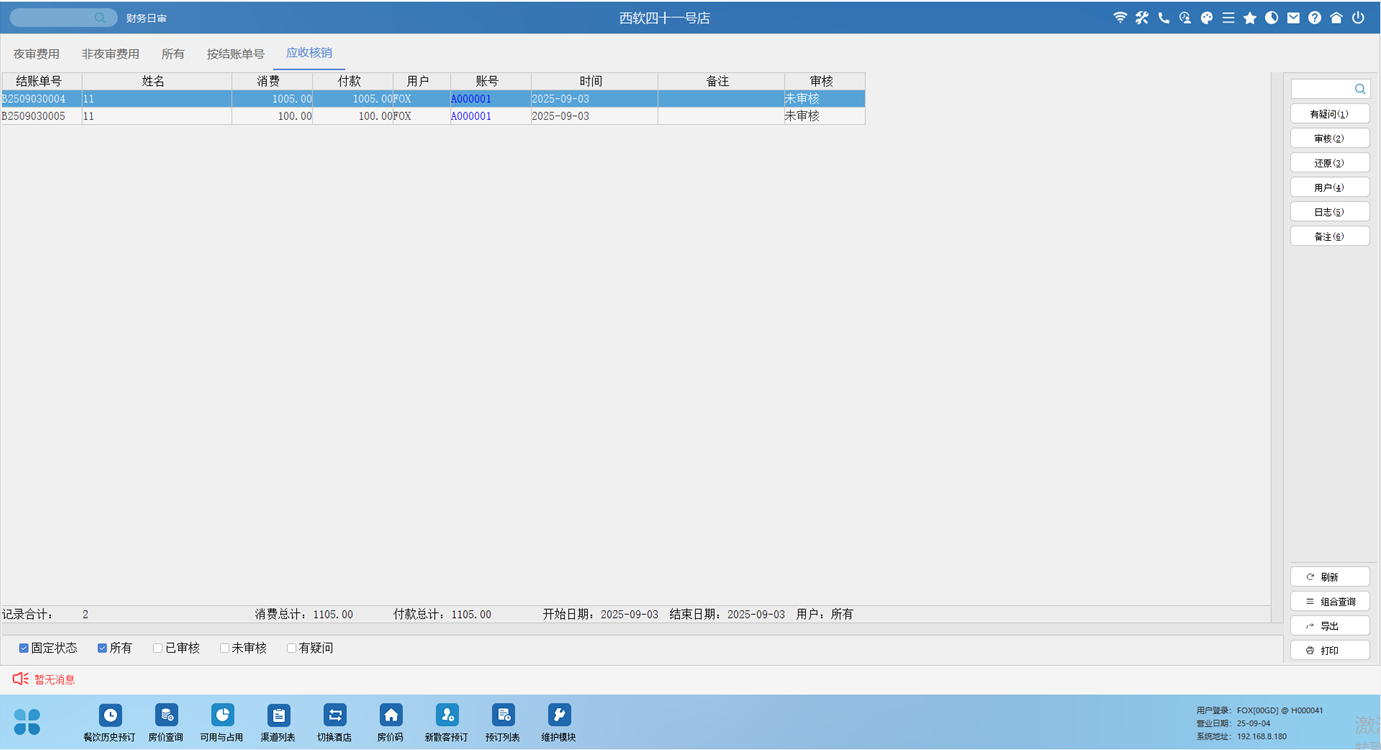 提供酒店应收核销的业务操作的查询,可以逐一查验与审核应收核销操作
