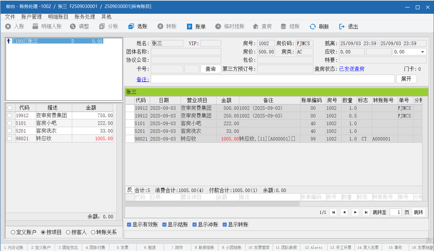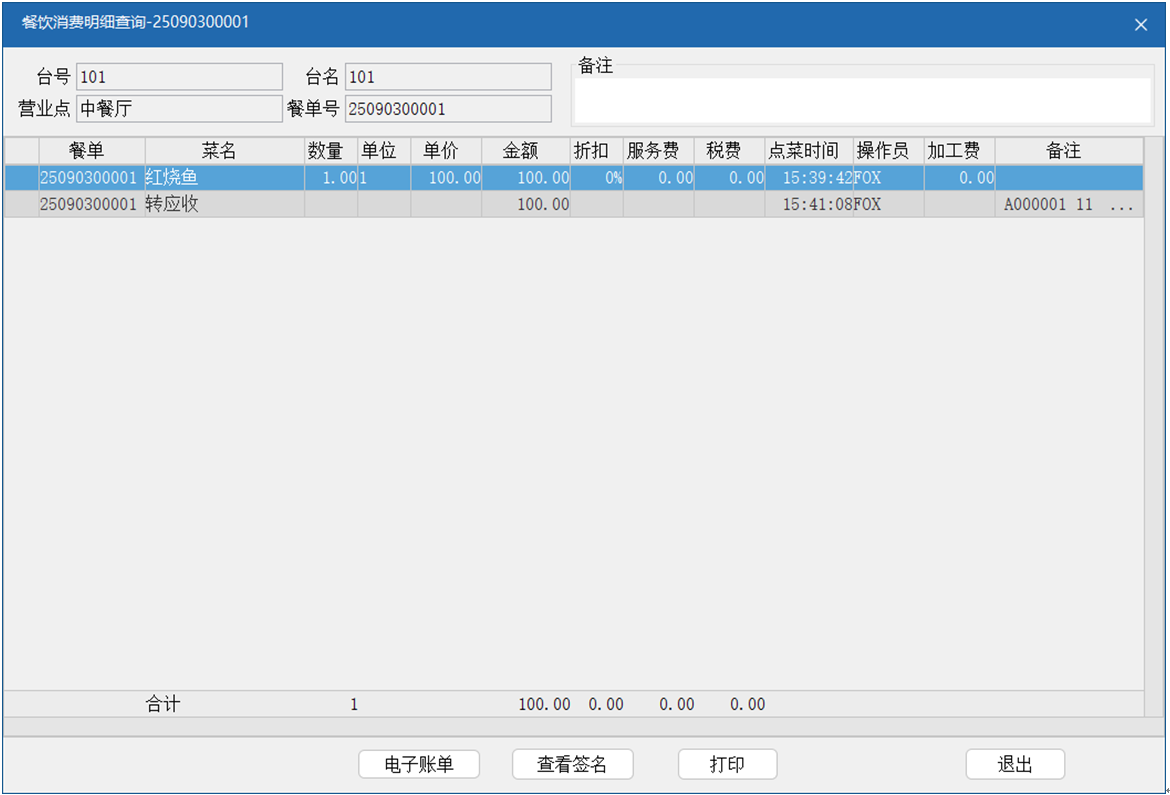 c)双击餐饮转入明细,穿透打开餐单窗口;