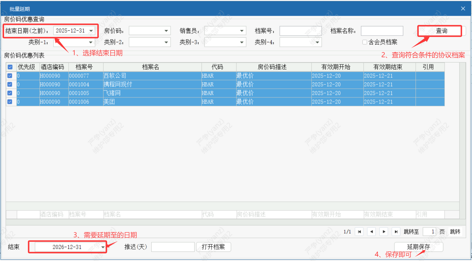 事项二:检查并延期协议单位中的优惠策略有效期,操作路径:客户->批量延期