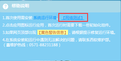环境安装完成后回到网页,点击“网络测试”,待更新完成后会启动测试软件。