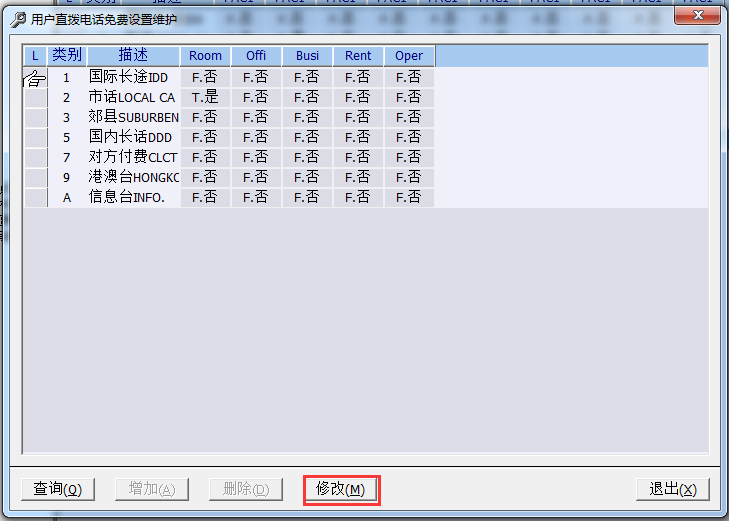 酒店开业时将电话按类分别设置是否计费。或是后期调整某一电话分类是否继续计费。