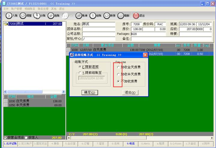 收银系统打开某个客人的档案点结账的时候会跳出一个选择结账方式。跳出的Day Use加收的方式如图1,这个加收半天或者全天或者不加收的时间如何设置.