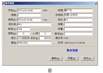 (2)、打开『修改预留』窗口。选择【房类】,表示换房类;修改【房数】,调整需要数;也可修改【房价】。单击〖删除〗,删除该预留记录;