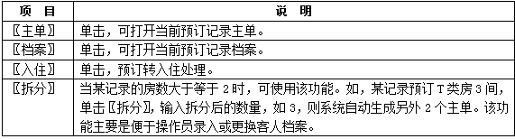 (2)、选择符合客人要求的客房(单击房号前 ,使其显示 ),单击〖分房〗,分房即成功,该预订记录不再显示在该界面;
