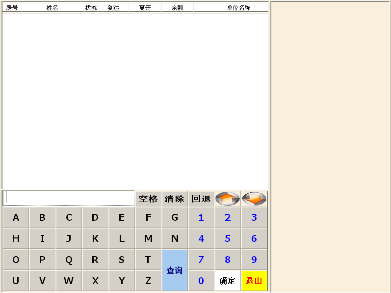 (2)、在空格处输入房号或输入宾客姓名的汉语拼音(外国客人则输英文名),单击〖查询〗,显示该住店客人的简要信息。