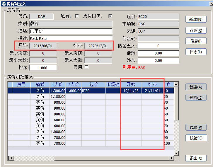 请检查房价码的有效期与房价码明细中的有效期是否有过期的