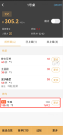 在所有菜界面下,已上菜和未上菜会一起一起显示,但是点击已上菜的更多按钮和未上菜的更多按钮,会弹出不一样的结果 如下图 2.8.7.1。