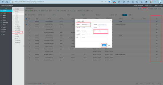 手机注册信息:收到手机的注册信息后,可以根据手机的设备名称和设备IMEL码等识别,勾选需要授权的设备点击修改,弹出修改的窗口,选择酒店和状态改为启用后点击保存即可。如下图所示: