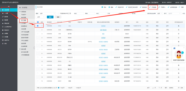 首先在 系统管理-员工管理界面选中对应的领导的工号,之后点击右上角的子级挂载按钮。如下图所示:
