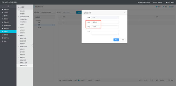 能耗表统计项界面可以新建对应的统计数据,如有客房的电表和办公的电表,需要计算总体的用电量,选择对应的类别点击右上角的新增按钮。如下图所示: