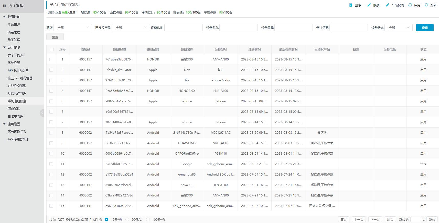 启用注册手机:选中需要启用的手机注册信息(可多选),点击启用,即可成功启用手机,
