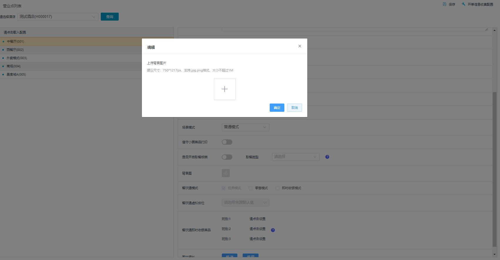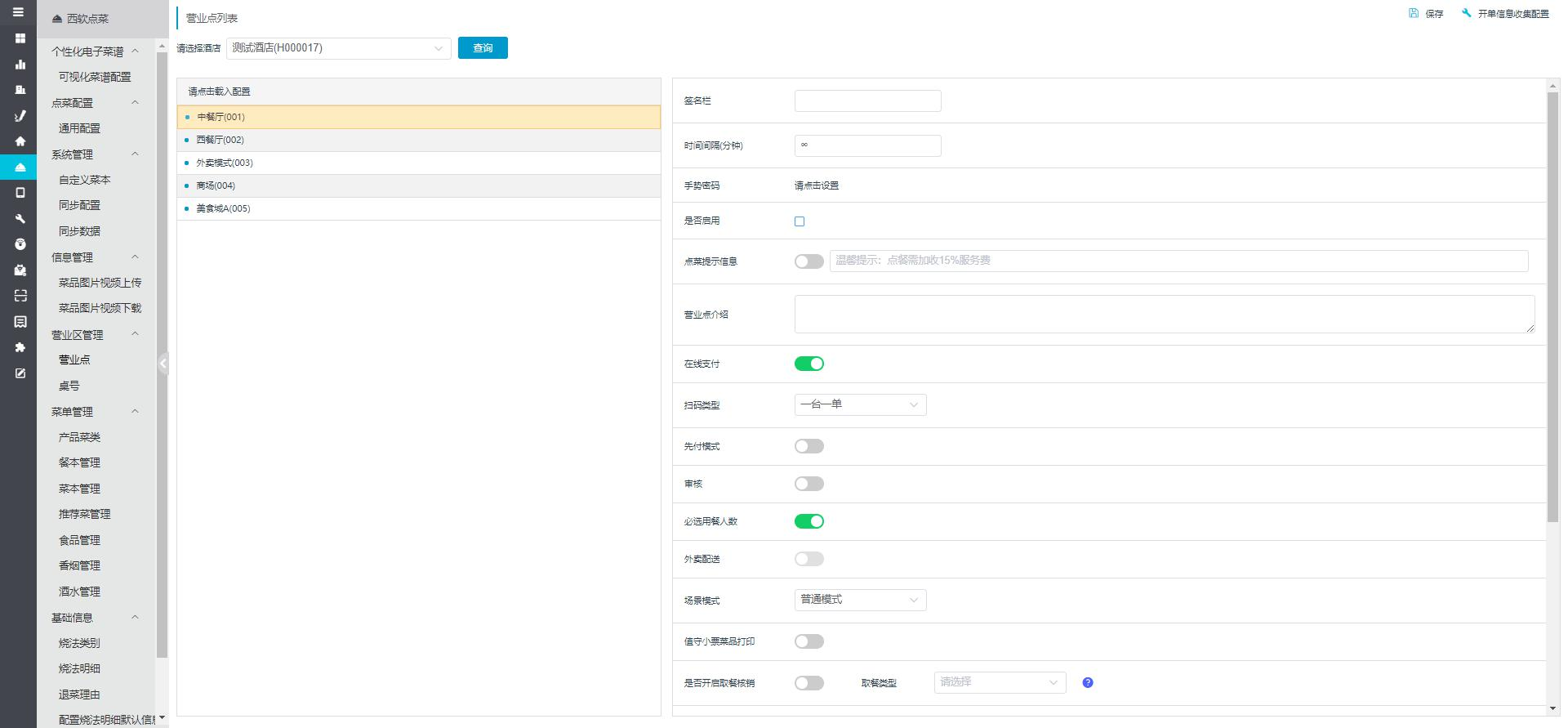 点击能够配置营业点的点菜提示,若西软点菜→营业点和扫码通→通用配置均配置点