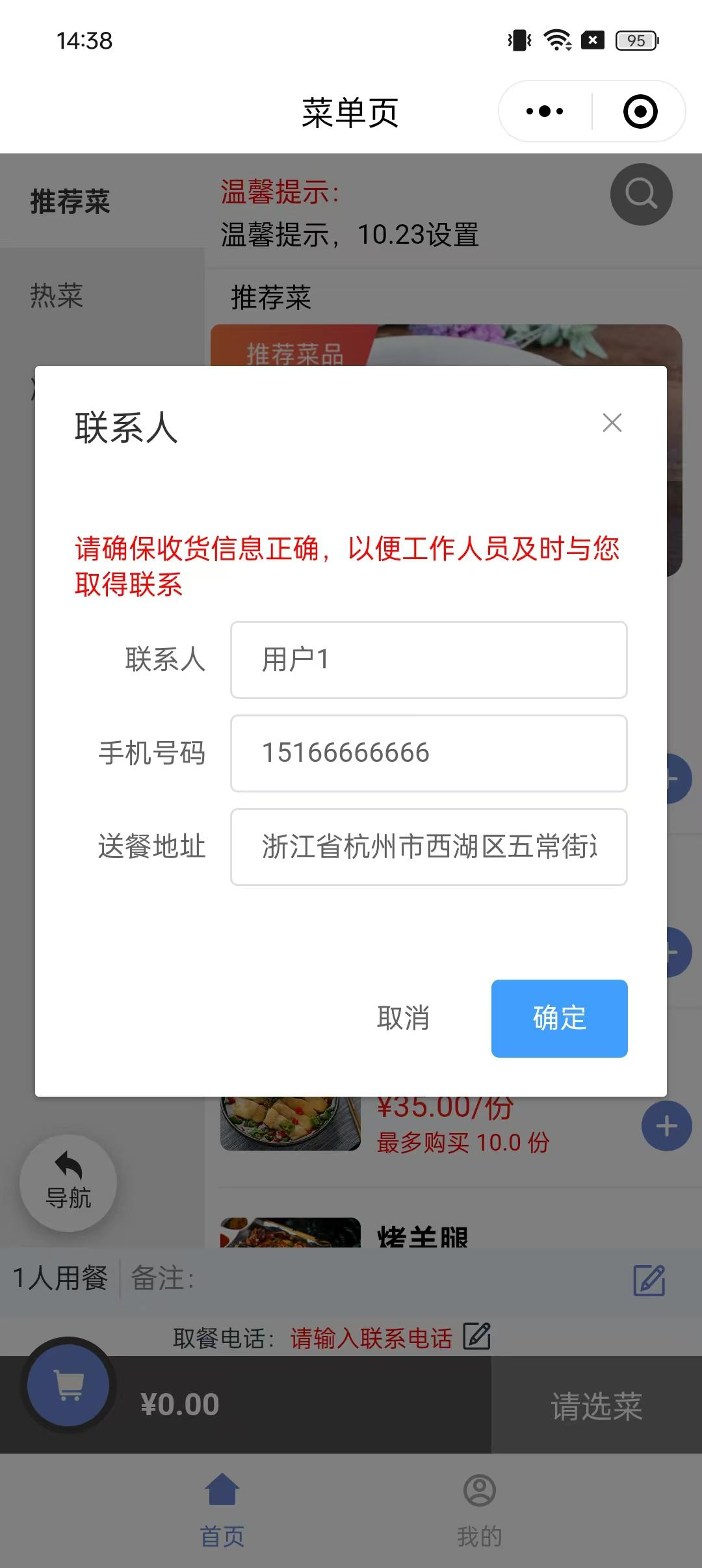 开启后菜单列表下方显示取餐电话的提示(如图 1.3.5-3 所示)