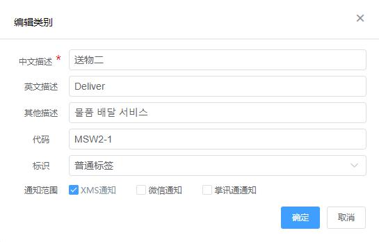 编辑服务大类:选中要编辑的服务大类,单击〖编辑〗按钮,打开『编辑标签』窗口,