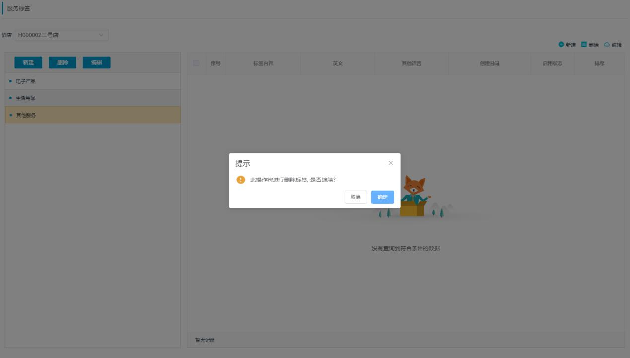 签,是否继续,单击〖确定〗,服务大类以及大类下的服务明细全部删除成功(如图 1.4.4-3