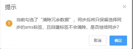 会把之前已经同步的 XMS 标签删除后重新同步,只保留此次选择同步的 XMS 标签,