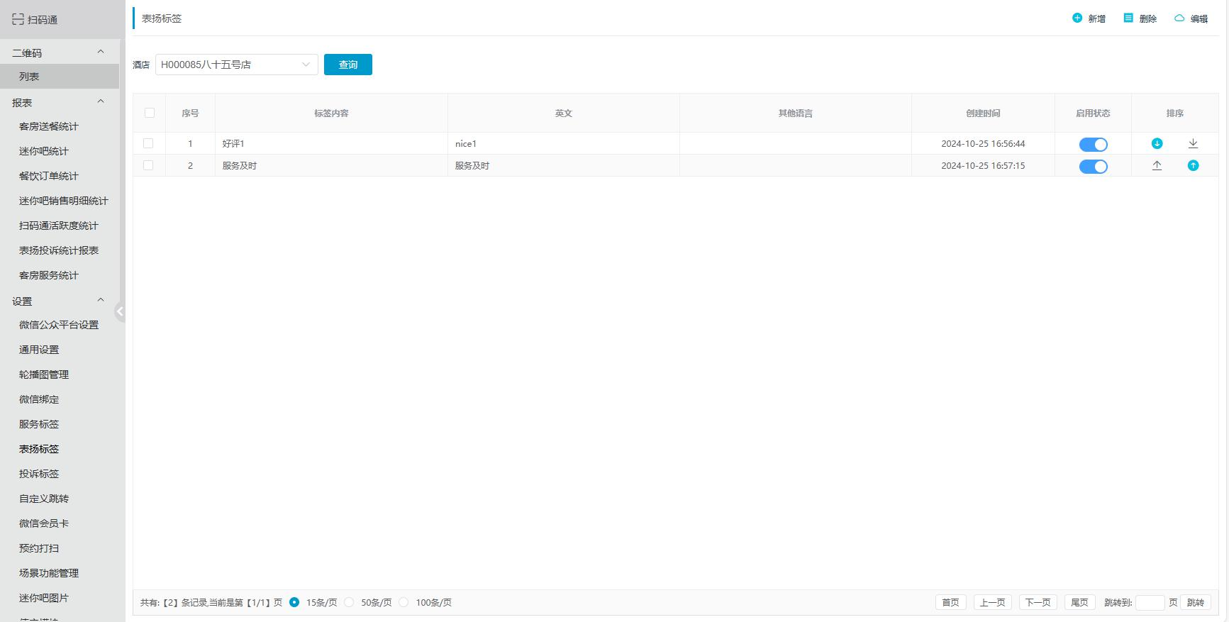 新增、删除、编辑、启用状态、排序操作与注意事项同1.4.4. 服务标签 ,不再赘述。