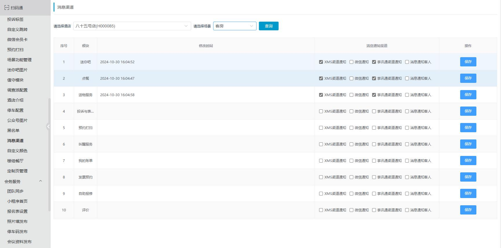 选择酒店后根据所选的场景的功能模块勾选对应消息渠道通知。(如图 1.4.17-1 所示)
