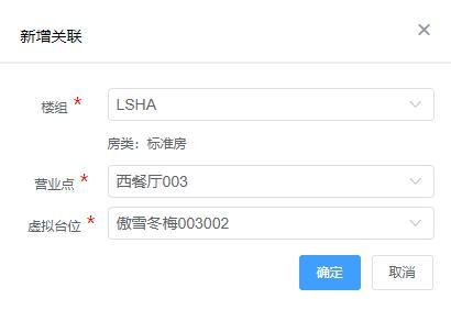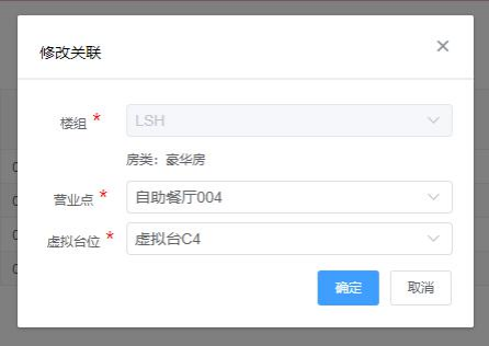 勾选要编辑的楼组餐厅,点击〖编辑〗按钮,打开『修改关联』窗口,修改营业点、虚