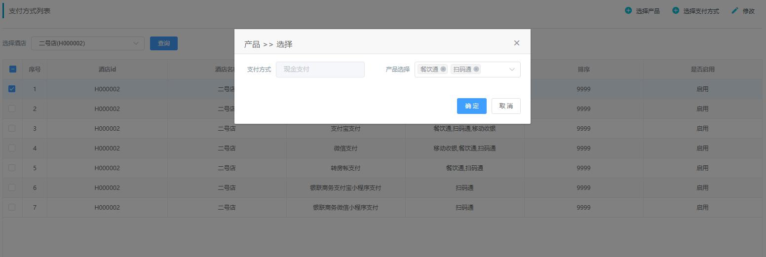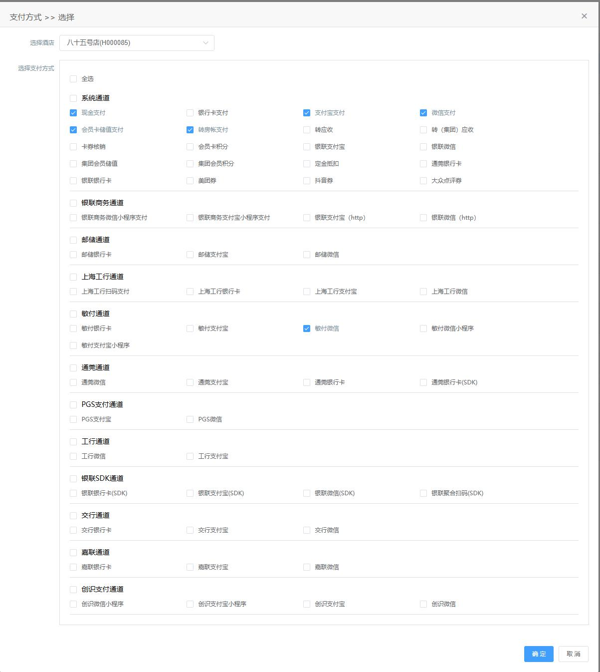 店,再勾选所需支付方式,单击〖确定〗即添加该酒店的支付方式,界面样式(如图 1.5.1-2所示)。