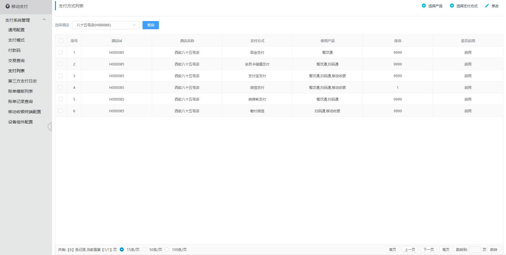 展开支付系统管理列表,选择【支付列表】,『支付方式列表』界面(如图 1.5.1-1 所