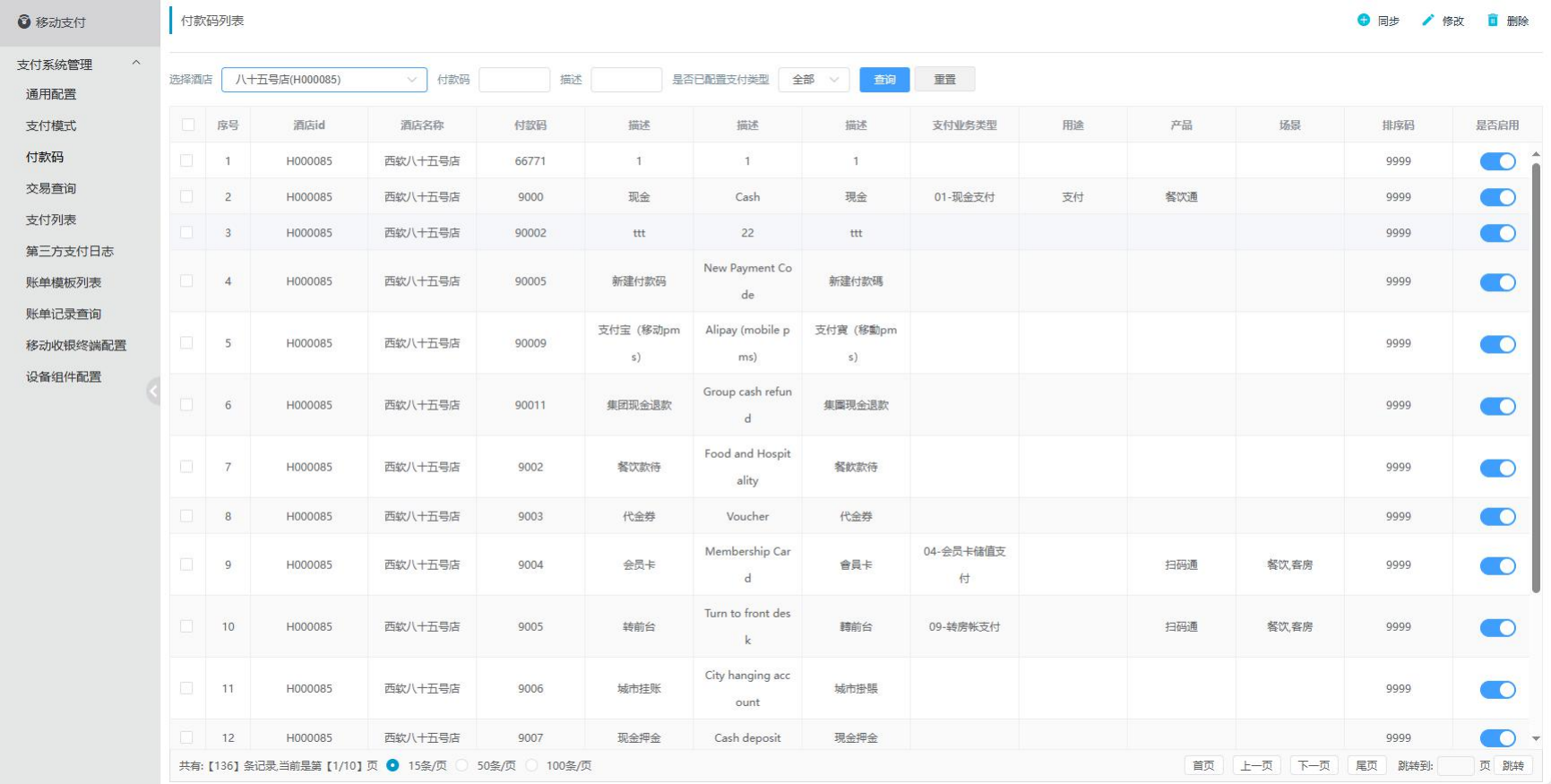 选择一条付款码,单击〖修改〗,单击进入『付款码>>编辑』界面,能够选择/取消选