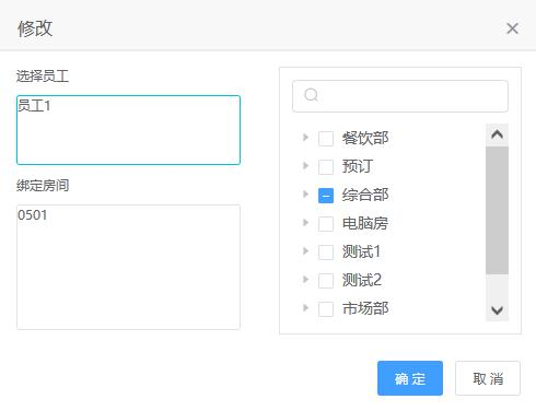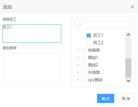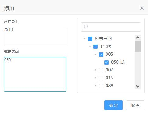 要绑定的员工及房间,单击〖确定〗按钮。(如图 1.6.4-2 所示)
