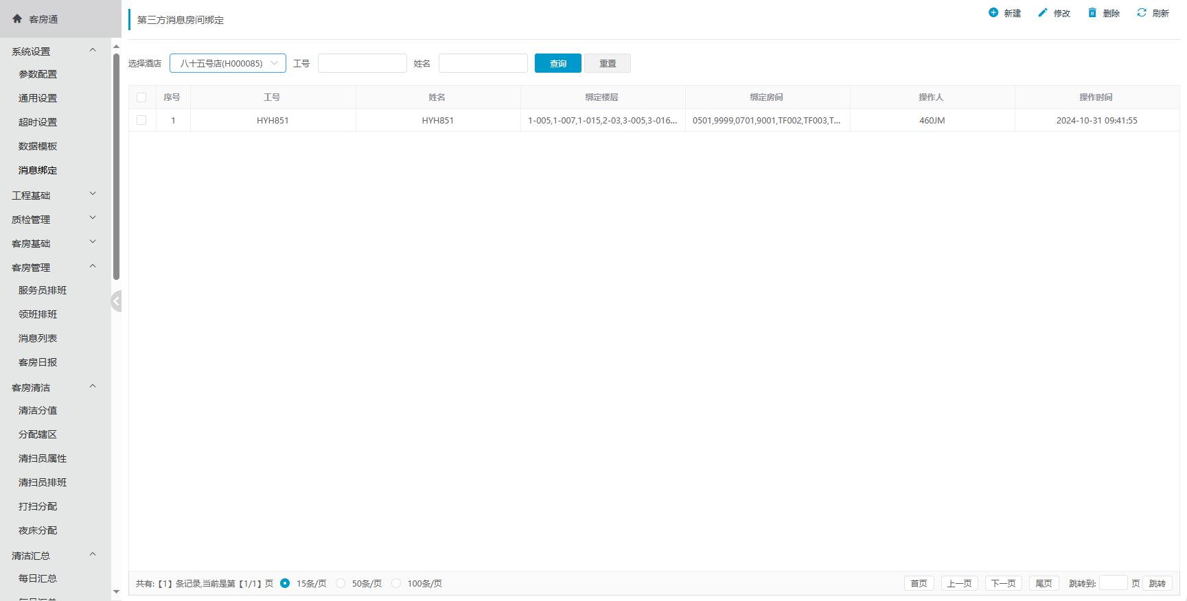当消息模式为需要消息绑定时,对工号关联的三方消息进行房间绑定。(如图 1.6.4-1所示)